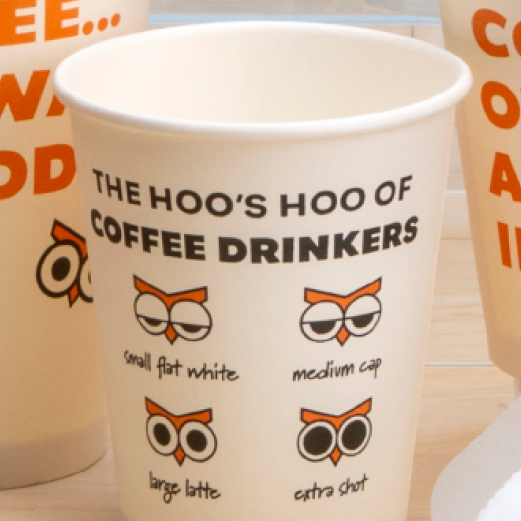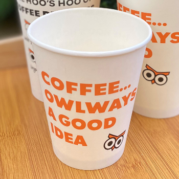 NightOwl required 45,000 PLA branded hot cups to launch their new coffee offer - HOOT! by OwlCafe. With a tight launch timeline, the business needed a fast, reliable, and fully compliant solution that met Single-Use Problematic Plastics (SUPPs) legislation.